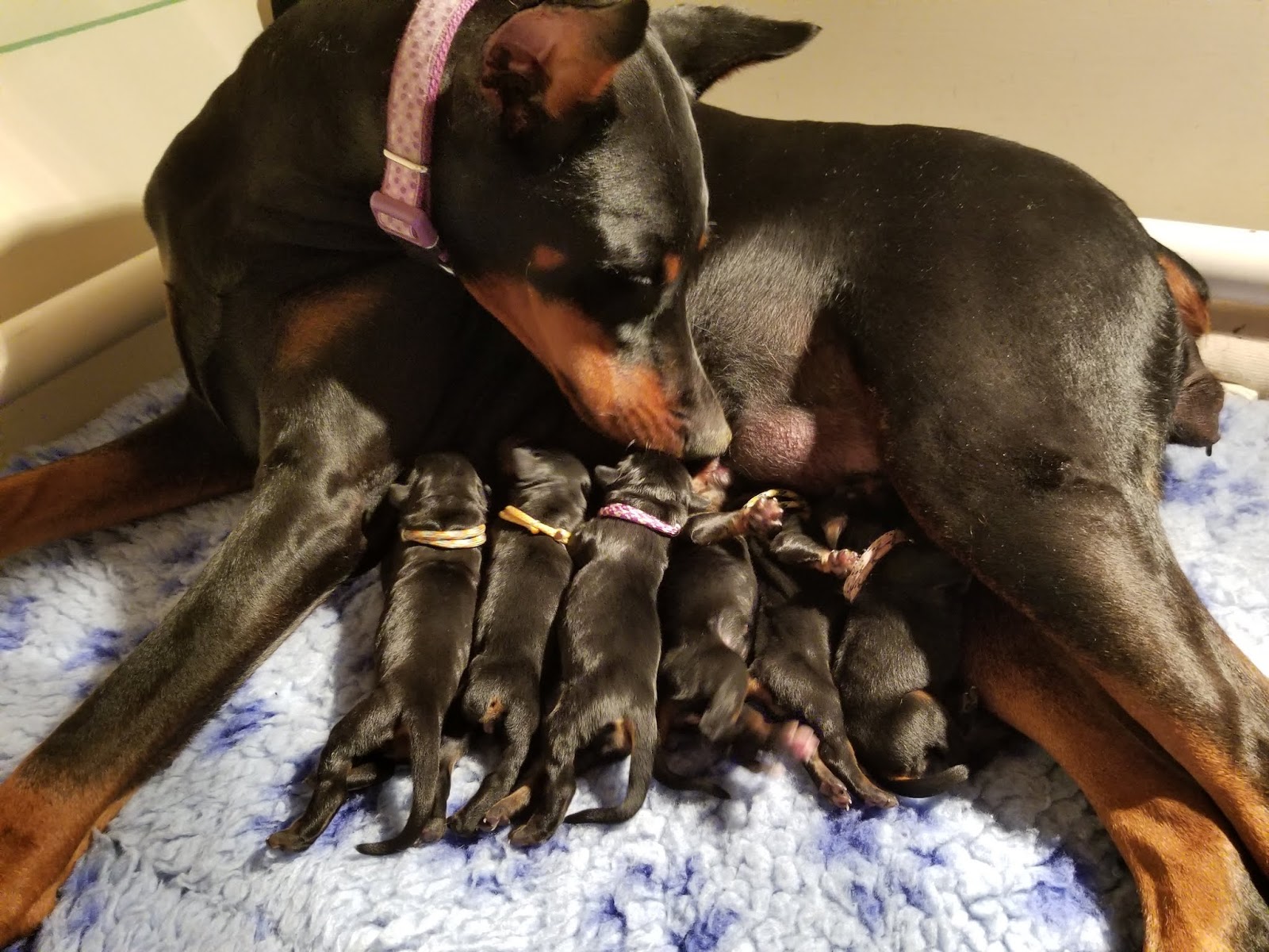 Coco Belle comes with AKC limited registration, microchip, 2 year health warranty, and lifetime support from her breeder Snow Spring Dobes. (https://www.facebook.com/snowspringsdobes/)